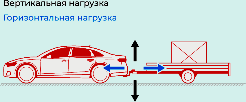 Горизонтальная нагрузка обозначает допустимую массу буксируемого прицепа. Этот показатель указывается в килограммах и зависит не только от фаркопа, но и от возможностей автомобиля.